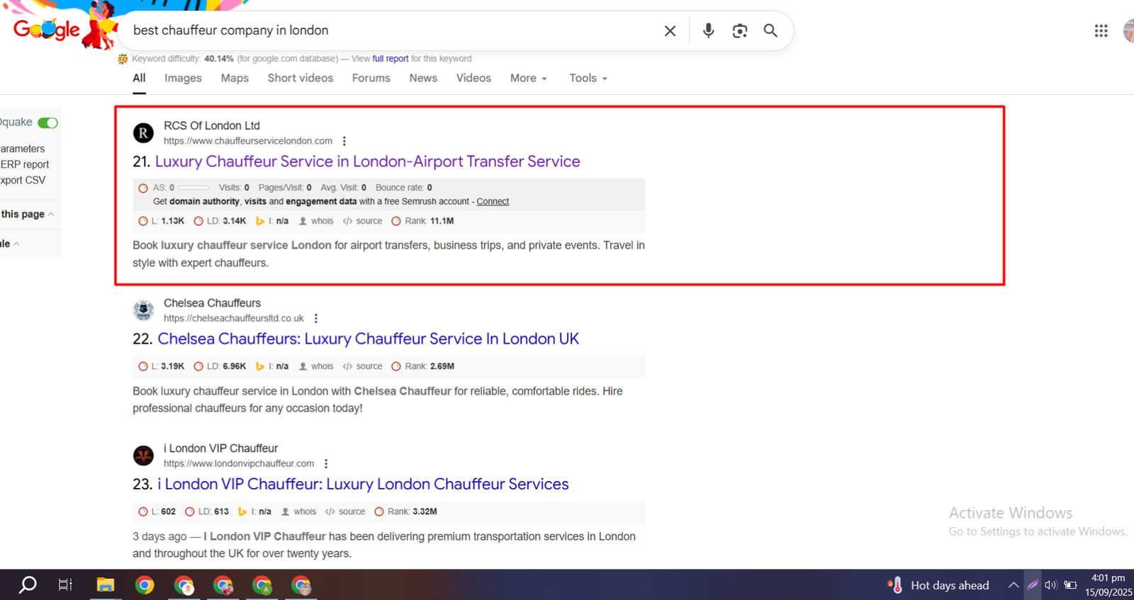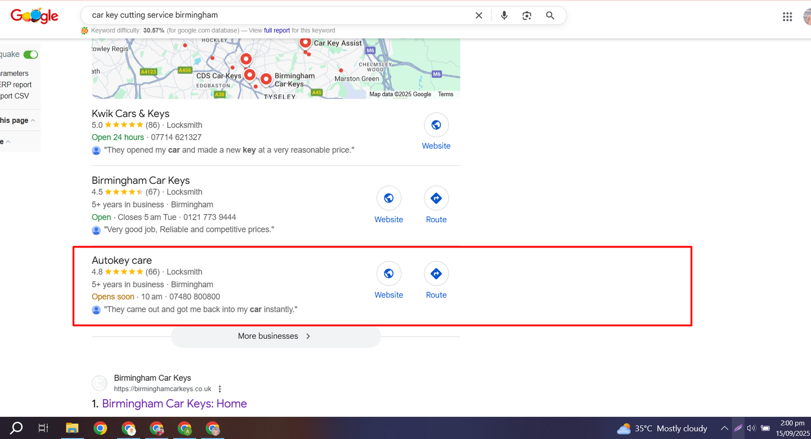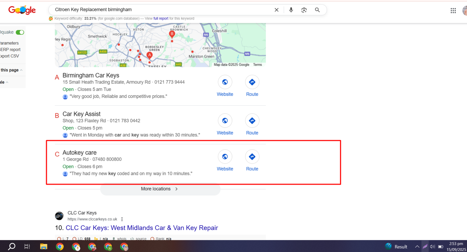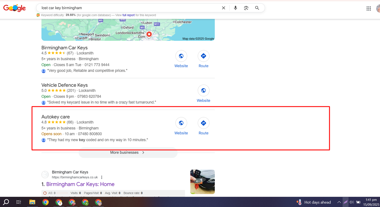 Results Achieved: Through a well-structured SEO campaign, we enhanced AutoKeyCare’s keyword rankings, website authority, and local search visibility. As a result, Autokeycare.co.uk now ranks for numerous high-traffic automotive locksmith-related keywords, driving consistent organic leads and strengthening its position as a trusted car key service provider in the UK market.